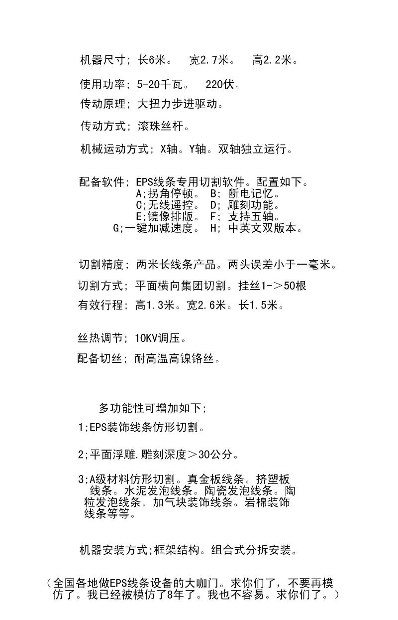 (全国各地做EPS线条设备的大咖门。求你们了,不要再模仿了。我已经被模仿了8年了。我也不容易。求你们了。)
